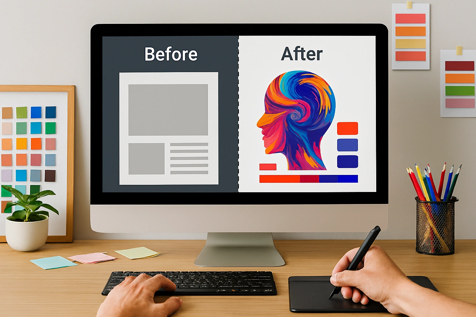 AI in graphic design refers to the use of artificial intelligence to automate or assist with design tasks. From layout generation and colour matching to logo creation and image enhancement, AI-powered tools help both professionals and businesses get creative results quickly.
